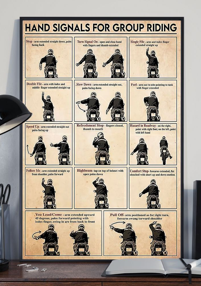 Hand Signals for Group Riding, Biker Hand Signals Canvas Poster